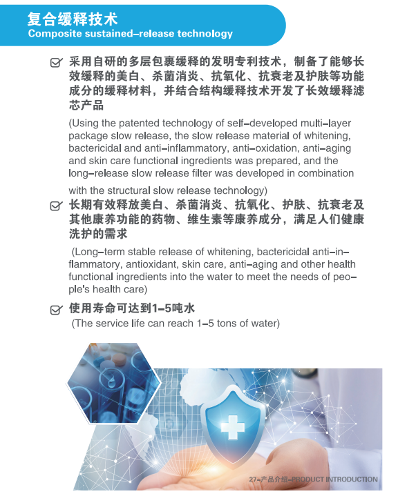 多层包裹缓释技术 能长期有效释放美白、杀菌消炎、抗氧化、护肤、抗衰老及其他康养功能的药物、维生素等康养成分,满足人们健康洗护的需求。