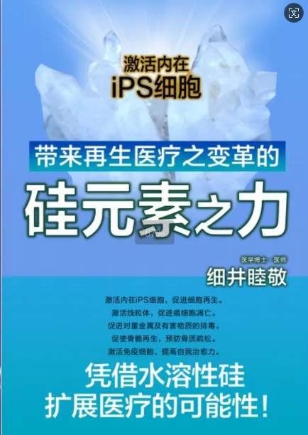 日本医学博士细井睦敬《硅元素之力》研究中发现硅对人体的作用:激活线粒体减少癌症;提高骨密度;增加血管弹性预防硬化调节血压;激活干细胞促进细胞再生;激活免疫细胞提高自愈力。偏硅酸(H2SiO3)的0.4纳米分子直径,使其能穿透消化道黏膜直接进入血液系统,在骨骼钙化过程中搭建分子桥梁,这种"液态脚手架"作用让补钙效率提升3倍。