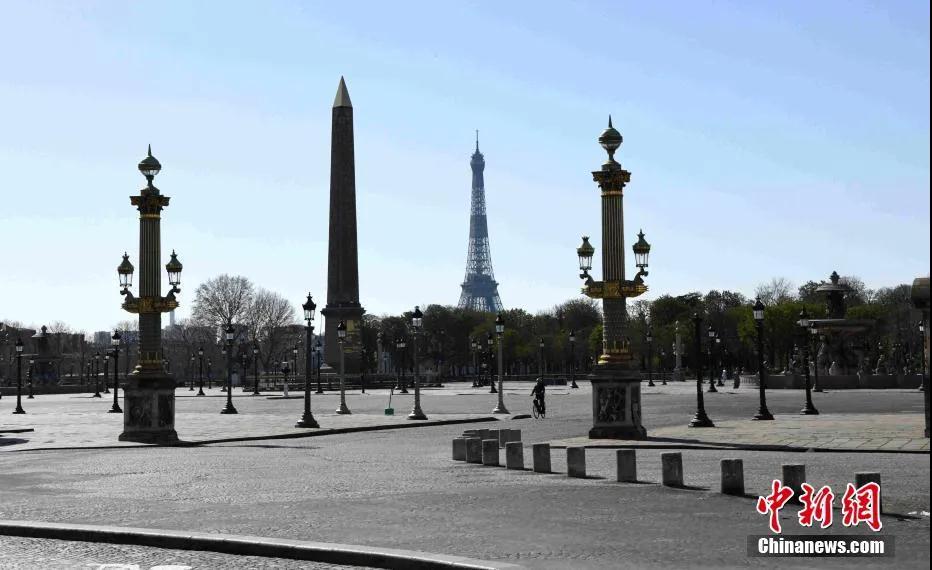 图为严厉管制措施下,位于巴黎市中心的协和广场当天几乎没有行人和车辆通行。中新社记者 李洋 摄