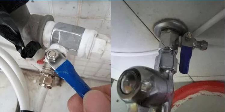 2.然后将净水器的三通阀门关闭,切记不可直接打开滤芯盖,先将水源关闭后,再进行操作。